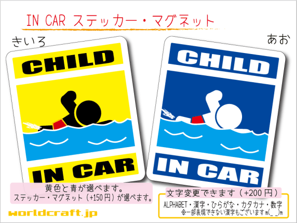 - ■CHILD IN CARステッカースイミング!■水泳 プール 1枚 色・マグネット選択可■子どもが乗ってます かわいい耐水シール KIDS 車に☆ (4