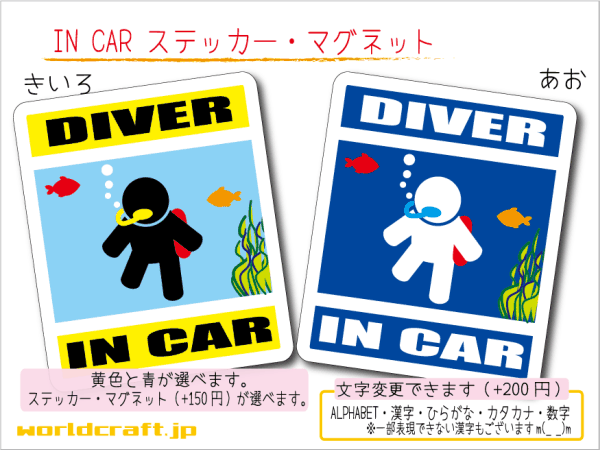 > ■_ IN CARステッカースキューバダイビング!■ダイバー 1枚 色・マグネット選択可■車に乗ってます おもしろ 耐水シール☆_ot