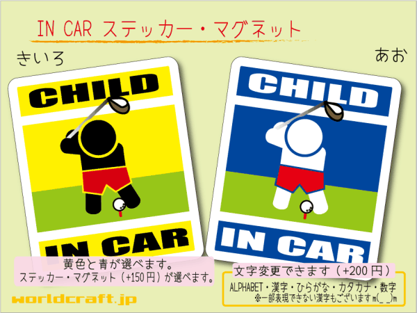 > ■CHILD IN CARステッカーゴルフ ゴルファーA 1枚 色・マグネット選択可■子どもが乗ってます かわいい耐水シール KIDS 車に☆