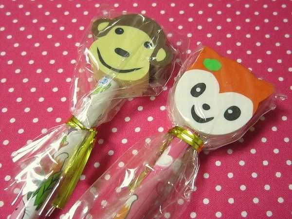 - アニマル消しゴムつき鉛筆 2本セット 動物 レトロ