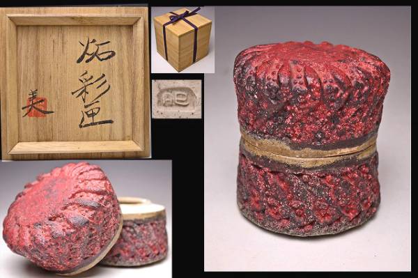 - 肥沼美智雄 ★ 石彩筥 ★ 共箱 ★ 検 石器 陶筥 陶箱 ★ 人気作家 迫力 蓋物 ★