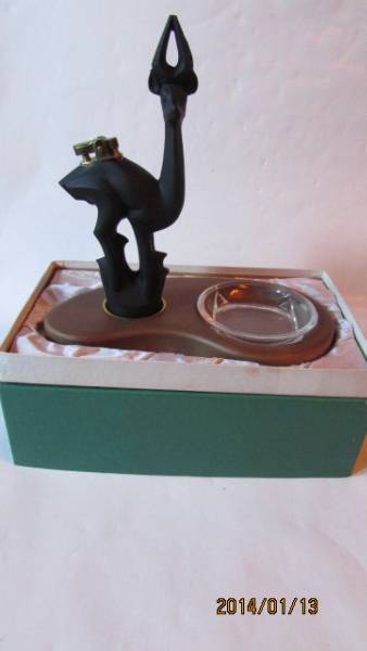 - (旧家・蔵出し)(レトロな鹿型ライタ-とガラス灰皿セット)