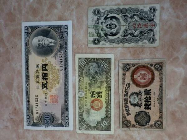 - ★ 大蔵卿20銭・明治通宝10銭・戊号10銭・高橋50円 4枚 ★ No.593