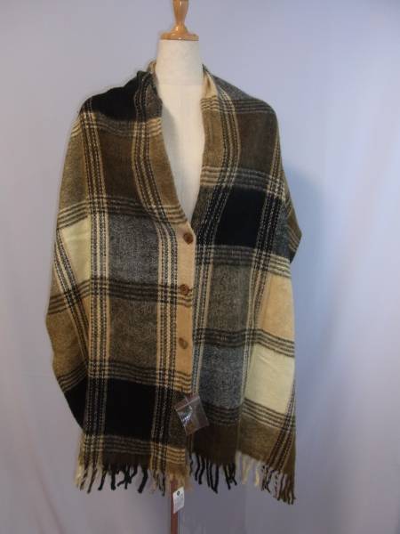 - ●クロスカンパニー●ストールボタン付き■茶系チェック■未使用