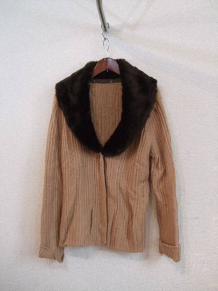 - ベージュフェイクファー付きニットカーデ(USED)121614
