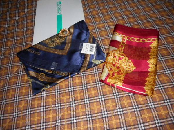 - 未使用!川辺 紺色 スカーフ 暗め赤 スカーフ ブローチ?