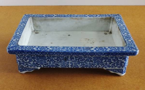 - 水石関連★ 唐物 染付 香炉鉢 中 ★長方。経年劣化有り。