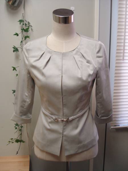 - 新品タグ付◆Mayleaf◆薄手ナローベルト付ジャケット グレー 7号