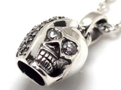 - ★お勧め★シルバーネックレス★スカル髑髏&クリアジルコニア★