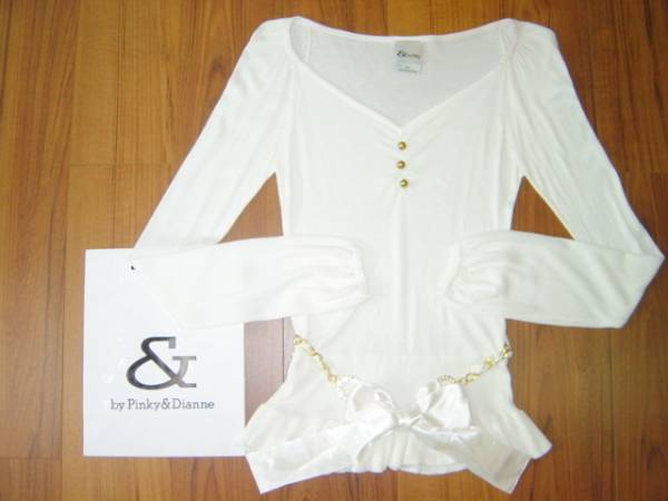 - &byP&D◆チェーン リボン ベルト付◆フリル長袖ニット白 未使用