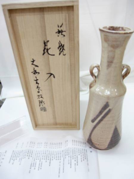 - 極美品●萩焼 巨匠 大和吉孝作 花入 高級桐箱入り 管理1601 A-10