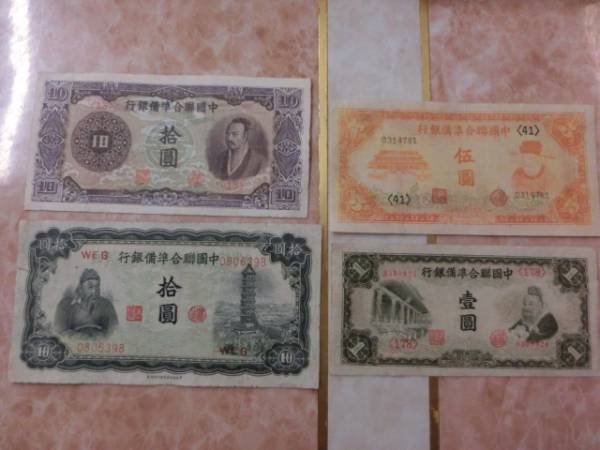 - ★ 中国聯合準備銀行 壹圓・伍圓・拾圓 4種4枚セット ★ No.911