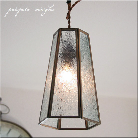 > エンボスガラスハンギング ランプ 六角 パタミン ペンダントライト ペンダントランプ 照明 店舗什器 カフェ レストラン 飲食店