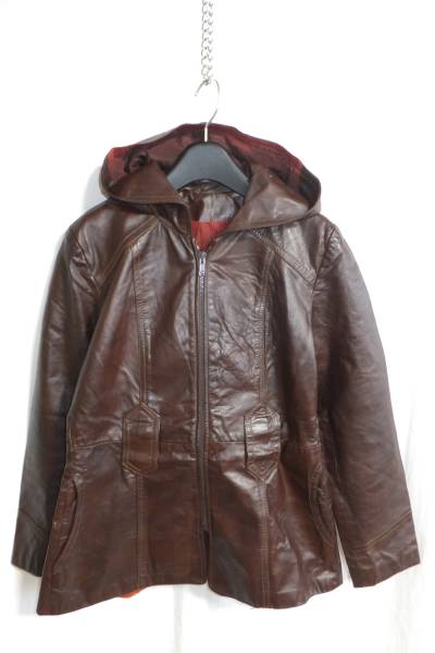 - ☆☆送料無料☆☆訳あり☆ビンテージ☆フード付きレザーコート☆サイズ8☆z20☆