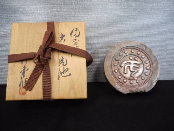 (管 G6)旧家蔵出時代骨董在銘 古備前 香合/朱肉入れ?拍卖