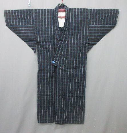 - 【政】29742 縞 木綿 着物 雨垂れ 絣 リメイク 材料 古着
