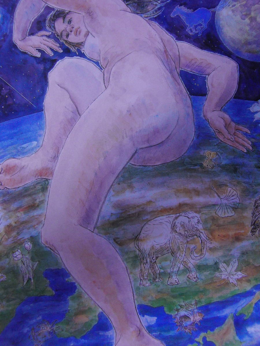 - 真壁輝男、〈続・地球讃歌〉、希少画集画、高級新品額・額装付、状態良好、送料無料