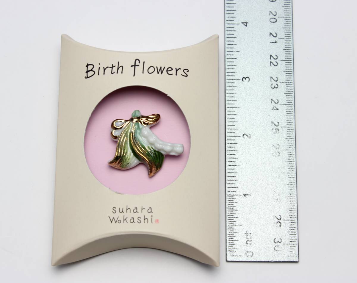 > 陶器製 誕生花 ピンブローチ 5月 すずらん【新品 未使用 ケース入り】日本製 瀬戸焼 鈴蘭 ラペルピン ピンバッジ すはらをかし せともの