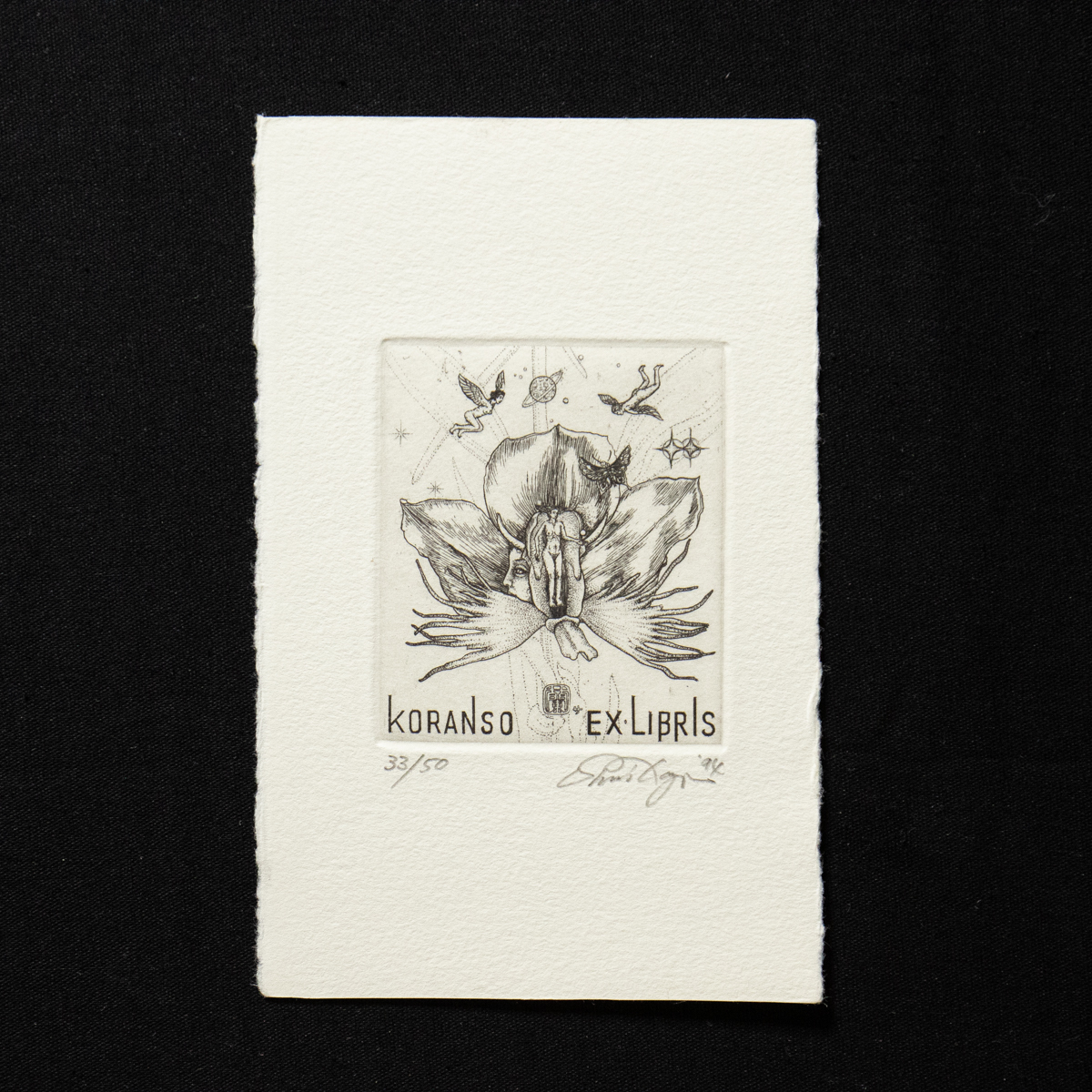 - 【蔵書票 300】 多賀新 花弁 33/50 EXLIBRIS