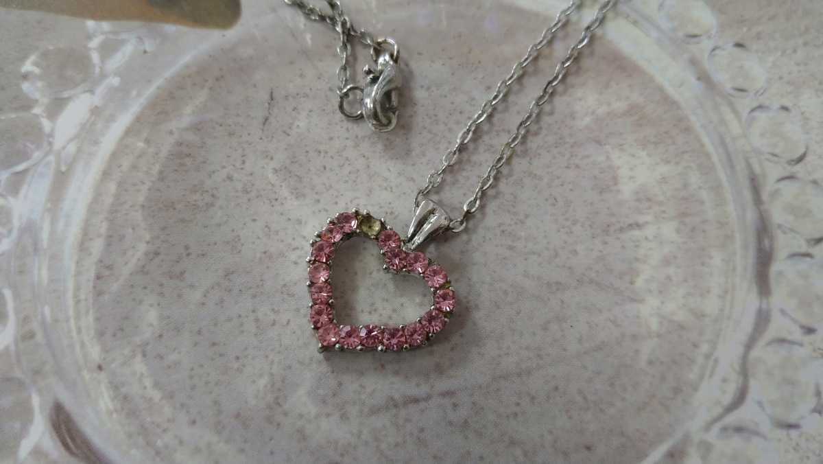 - □訳あり□ピンクラインストーン・オープンハート・ネックレス□