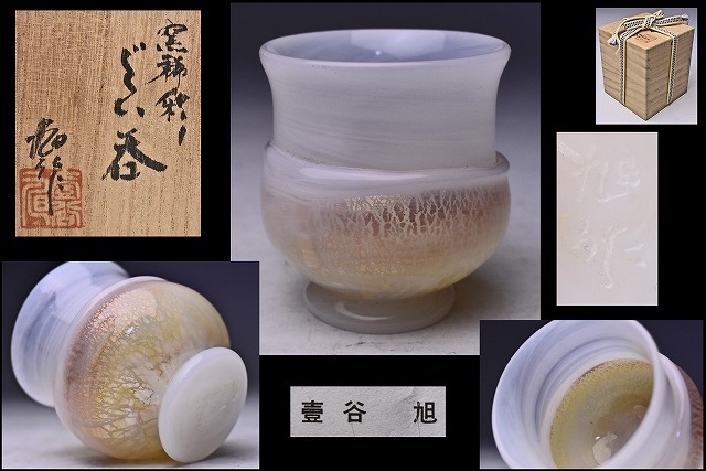 - 壹谷旭 ★ 窯稀彩 ぐい呑 ★ 共箱 共布 栞 ★ 物故作家 ★ 国内外で評価 ★ ガラス 硝子盃 ★