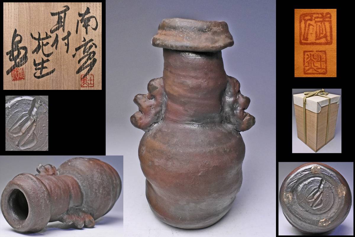 - 島武己 ★ 南蛮耳付花入 ★ 共箱共布 ★ 人の顔の様な耳 ★ 検:小橋川仁王 ★