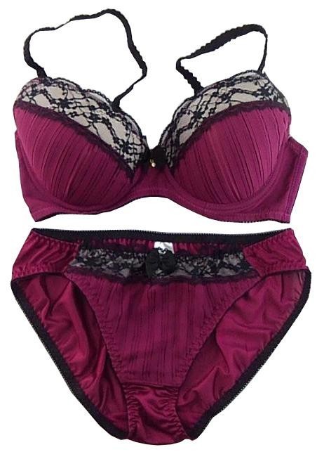 - SI6177-3◇ 新品 ブラジャー ショーツ 2点セット チュール レース 刺繍 ブラカップセンターリボン&チャーム付 E70M ワイン 送料 350円
