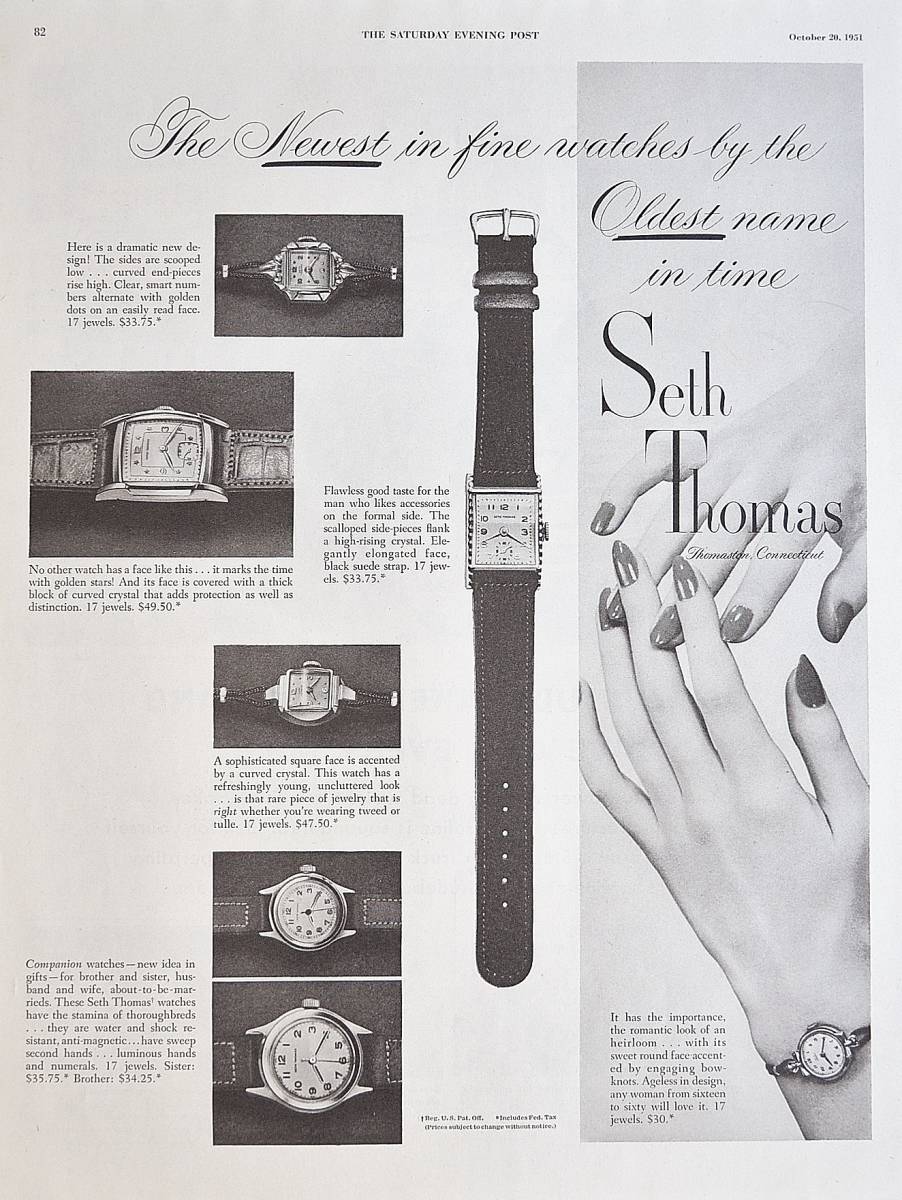 - 稀少・時計広告!1951年セス・トーマス 時計広告/Seth Thomas Watches/O