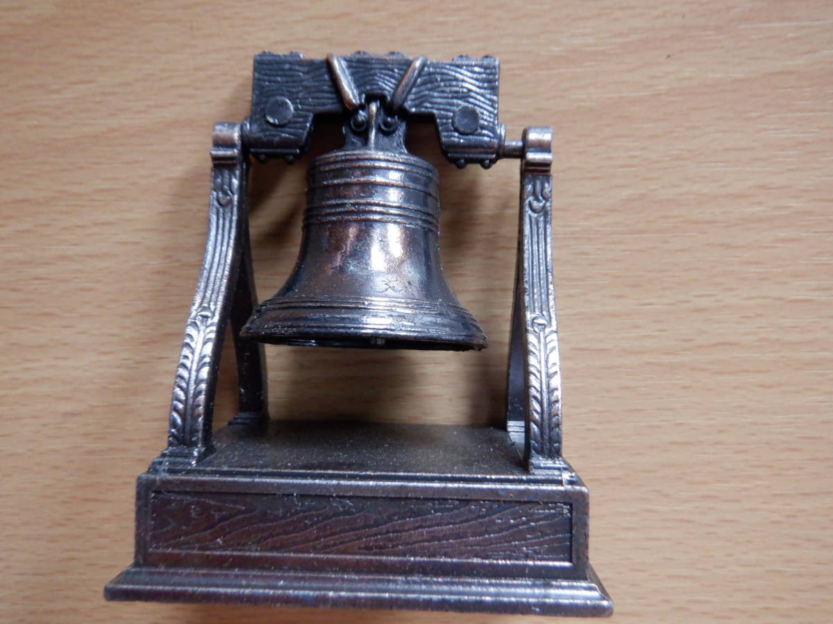 - 置物 鉛筆削り 金属製 自由の鐘、Liberty Bell(リバティ・ベル)のレプリカ 元箱入り 未使用品 昭和レトロ