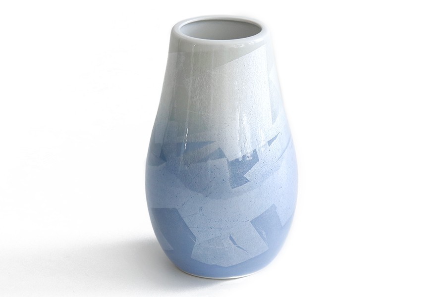- 国産 陶器 花瓶 ■ パール仕上げ ■ 青 7寸 ■ 下太 ■ 単品 高さ22cm ■ 花瓶