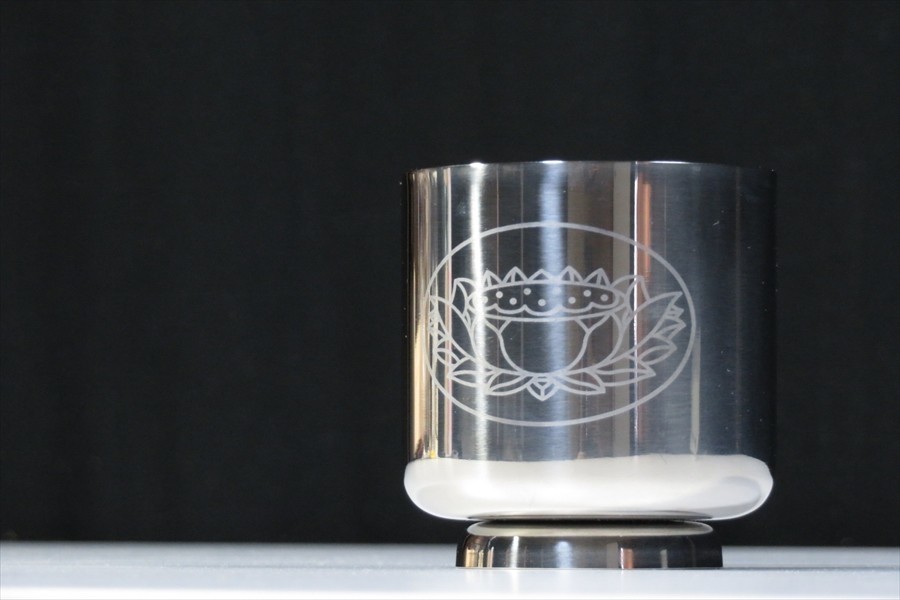 - 国産仏具■ 屋外用 ■ 金蓮柄入り ■ステンレス製 湯呑■ 大 ■ サイズ 約 (cm) 高さ5.9cm×幅4.9cm×奥行4.9cm お盆 お彼岸 お墓参り 供養