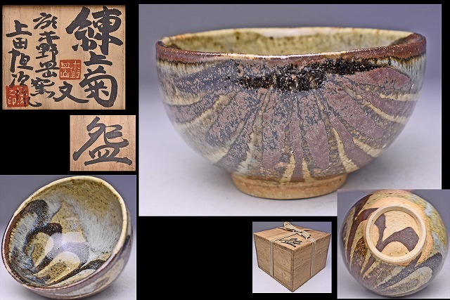 - 上田恒次 ★ 練上 菊文 茶碗 ★ 共箱 ★ 師:河井寛次郎 ★ 景色が素晴らしい逸品★検 河井武一 茶道具 練込