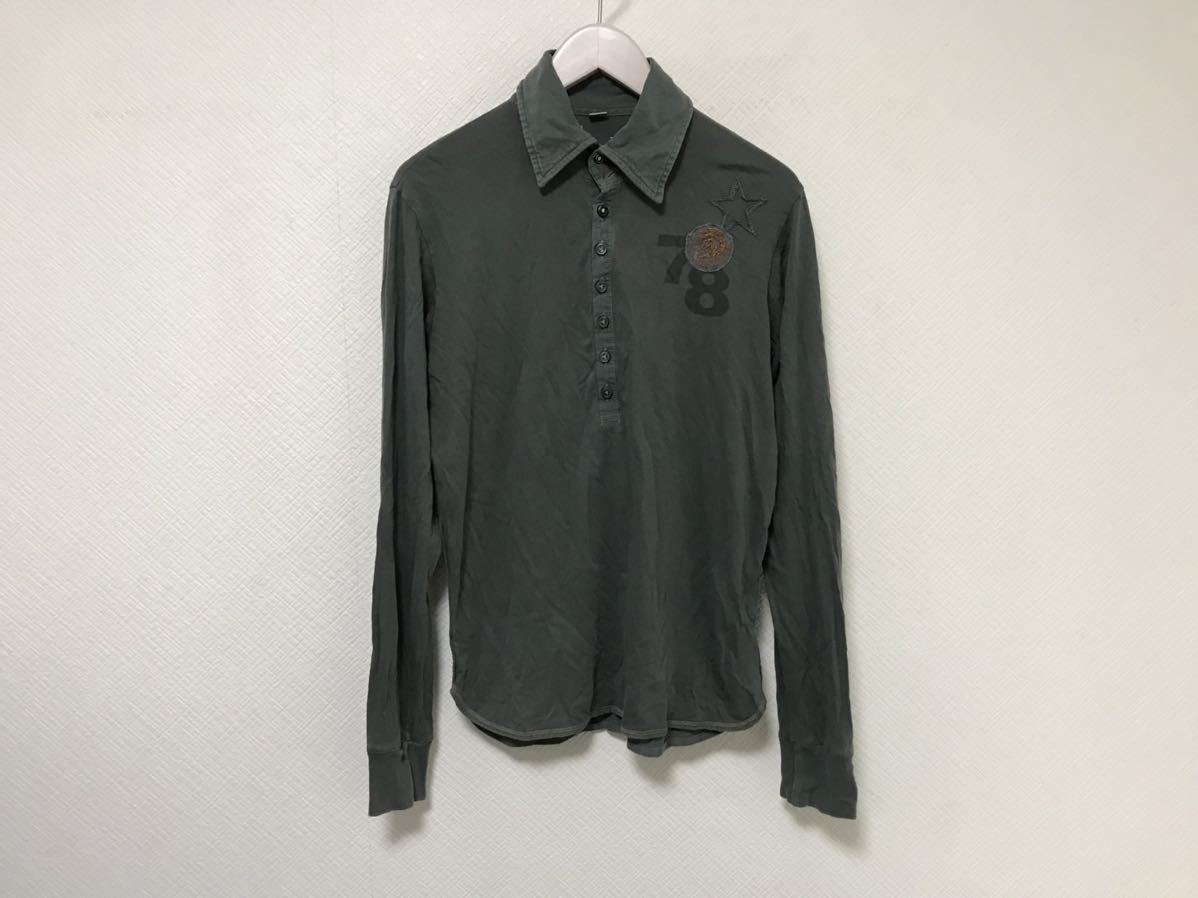 - 本物ディーゼルDIESELワッペンプリントコットン長袖ロングポロシャツメンズSグレー