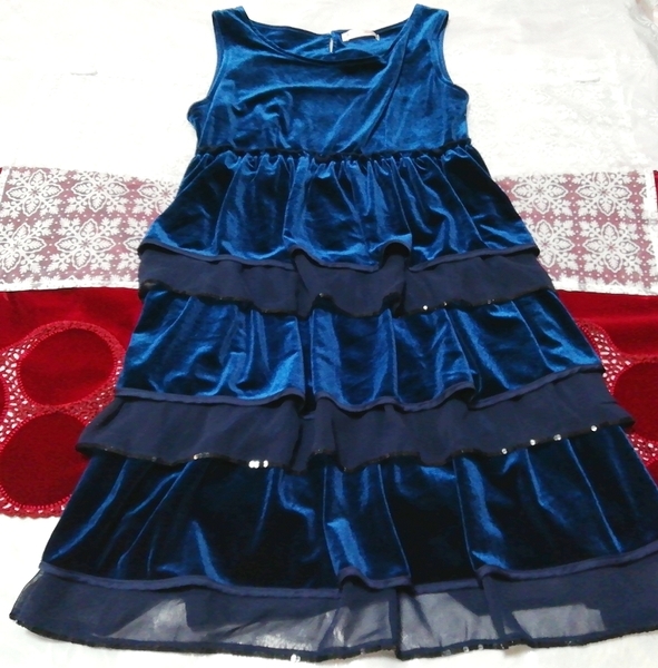 - 青ベロアフレア ネグリジェ ナイトウェア ノースリーブワンピースドレス Blue velour flare negligee nightwear sleeveless dress