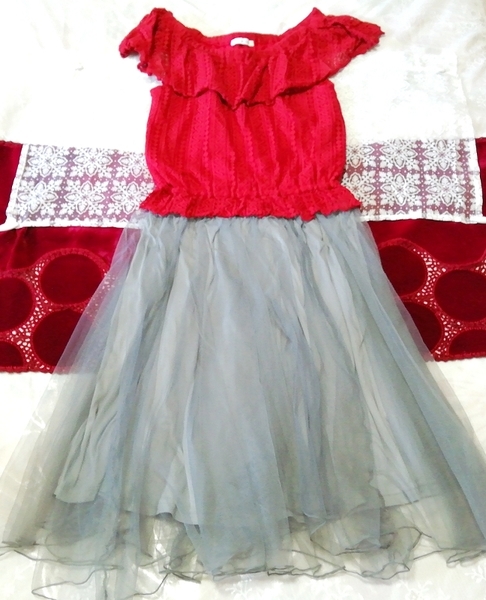 - 赤レースチュニック ネグリジェ グレーチュールスカート 2P Red lace tunic negligee gray tulle skirt
