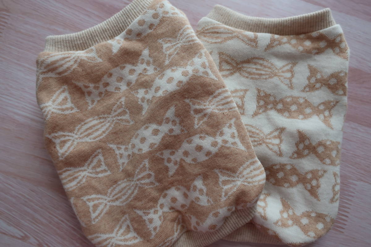 - 【3S】色違い 双子コーデ ベージュ系 生成り色 キャンディー柄 小型犬犬服ドッグウエアハンドメイド
