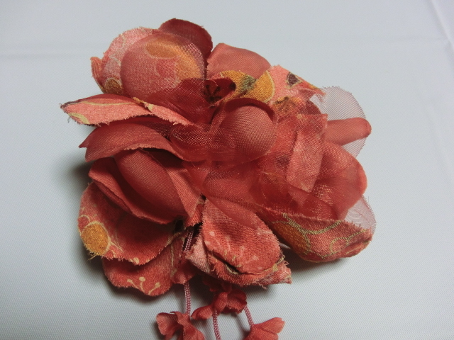 - ■未使用品:サーモンピンク系色.和柄髪飾り Tm722