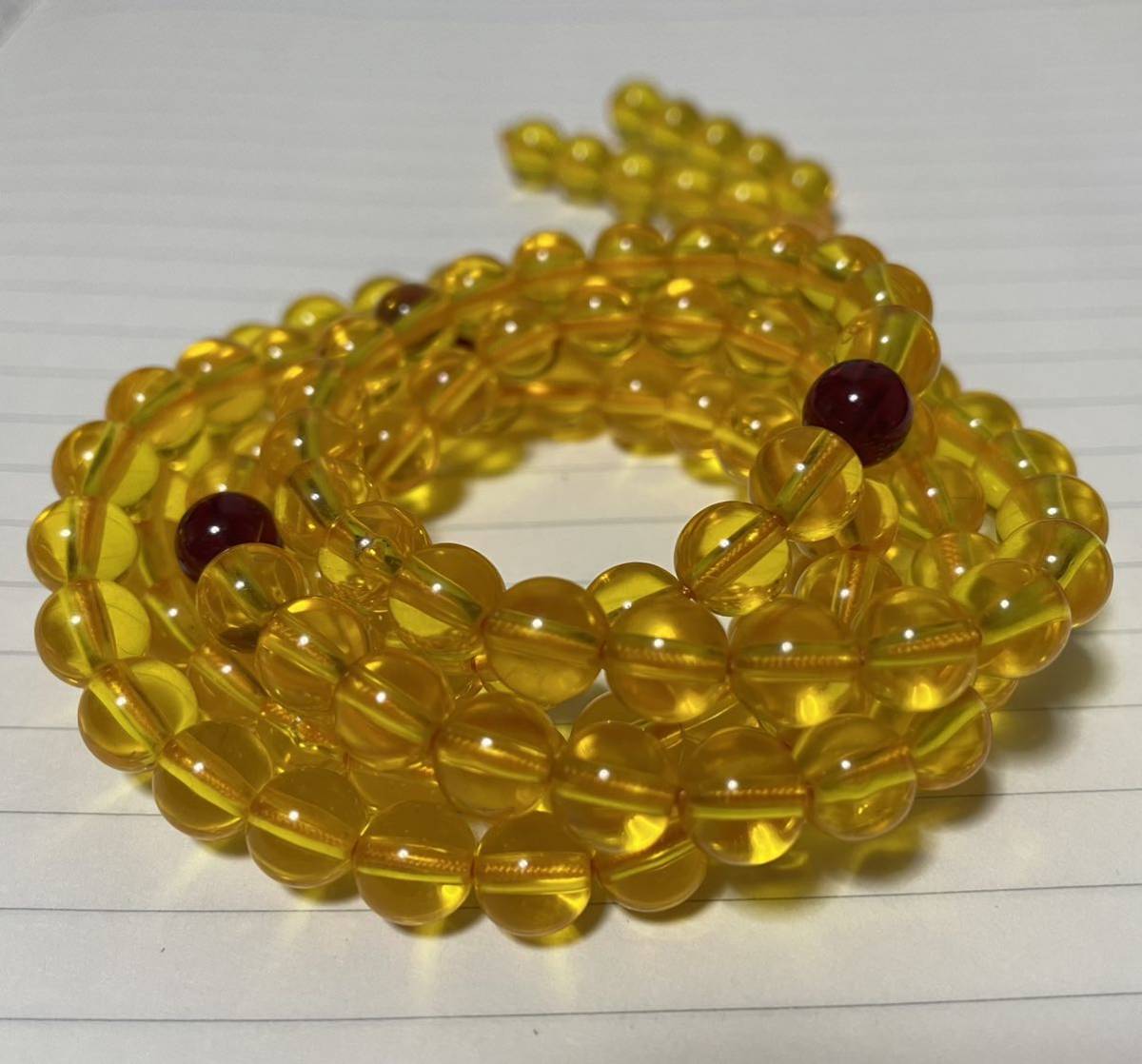 - 合成琥珀ブレスレット 7mm アンバー 蜜蝋 クリアイエロー 108珠 アクセサリー ファッション 男女兼用 御守り 魔除け パワーストーン