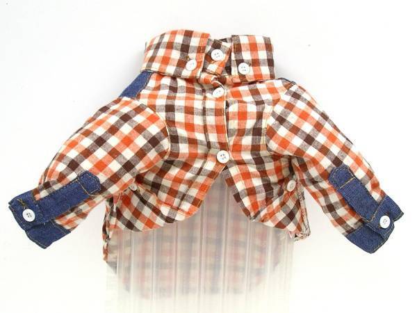 - オレンジ M 小型犬服 秋冬 チェックのネルシャツ 首回り30cm 胸囲42cm 背丈30cm デニム 室内 散歩 ペット用品 新品 送料無料