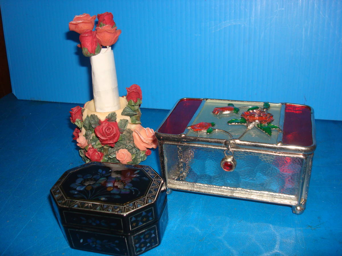 - バラ柄スティック+バラの収納+貝細工の収納 3点 TK14