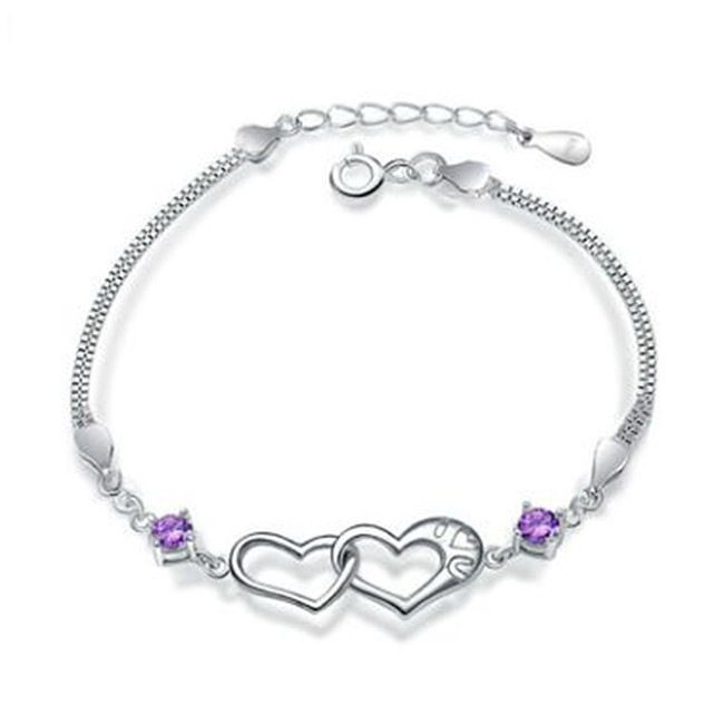 - IOU ダブルハート アメジスト風 キュービックジルコニア 二連 ブレスレット