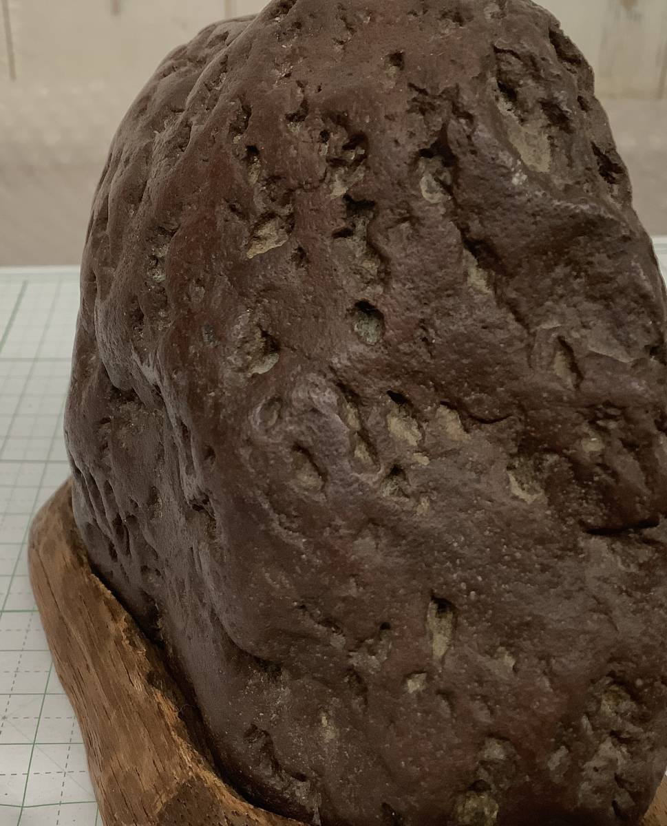 - 天然石 原石 鑑賞石 幽玄石 誂木製台座付 重量約810g サイズ約11x10x6cm 水石 床の間 観賞石 景石 展示 盆石