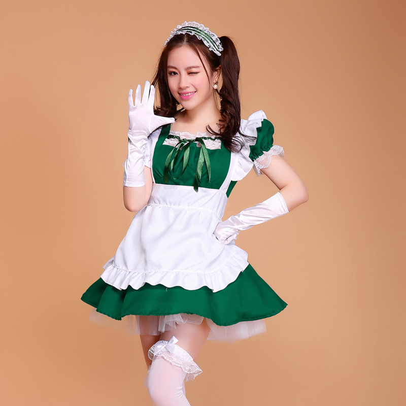 - 【L-3】ワンピース メイド 服 ロリータ 学園祭 ハロウィン お祭り イベント コスプレ衣装 緑
