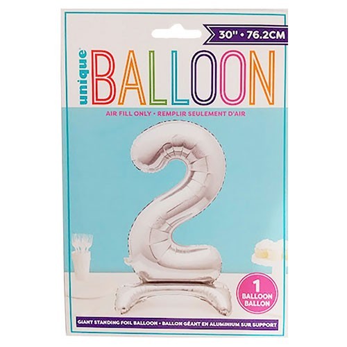 - 送料込 フォイル ナンバーバルーン スタンディング (#2 シルバー) 30 76.2cm 16059 風船 数字 数 大きい 誕生日 パーティーグッズ 飾り