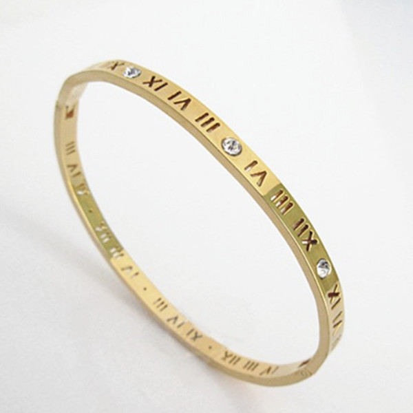 > ステンレス Roman Numeral ローマ数字 キュービックジルコニア バングル 18KGF