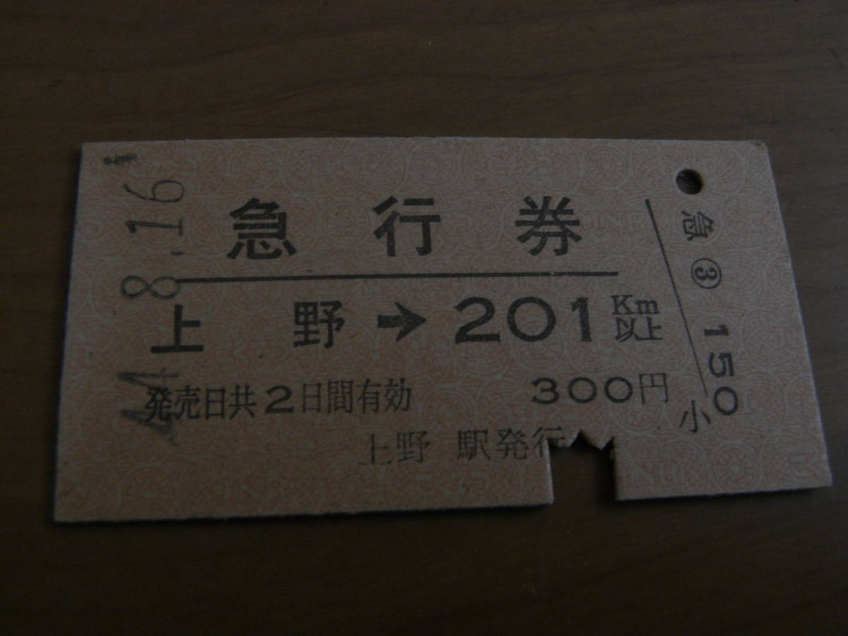 - 急行券 上野→201km以上 昭和44年8月16日 上野駅発行