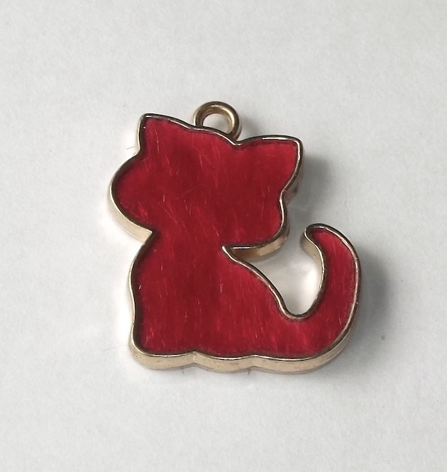 - ビンテージ ペンダント トップ 猫 シルエット 赤 ビロード ネコ アクセサリー チャーム キーホルダー グッズ レトロ