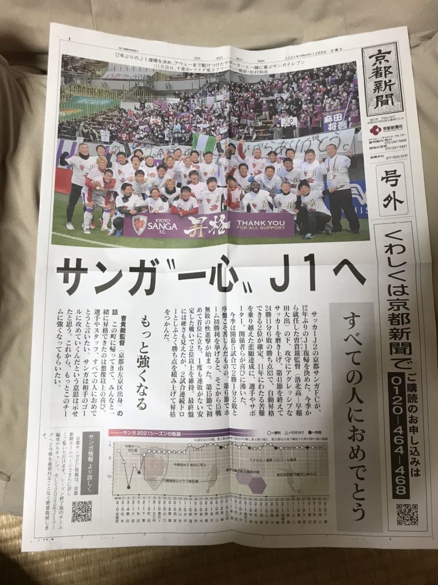 - 京都新聞 号外 京都サンガ 12年振りJ1昇格 1~8枚
