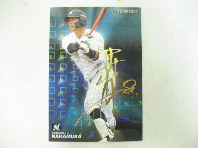> 2020年 Calbee カルビー プロ野球チップスカード スターカード 箔押し 金箔 サインカード 千葉ロッテマリーンズ 中村奨吾