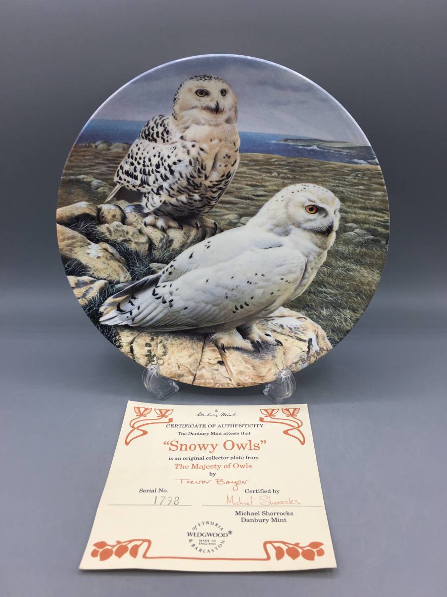 - 英国 証書付き ウェッジウッド 梟 フクロウ シロフクロウ 皿 絵皿 飾り皿 ①①②② (763)